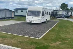Mainly compacted tarmac scalpings, with 16 amp hook up.