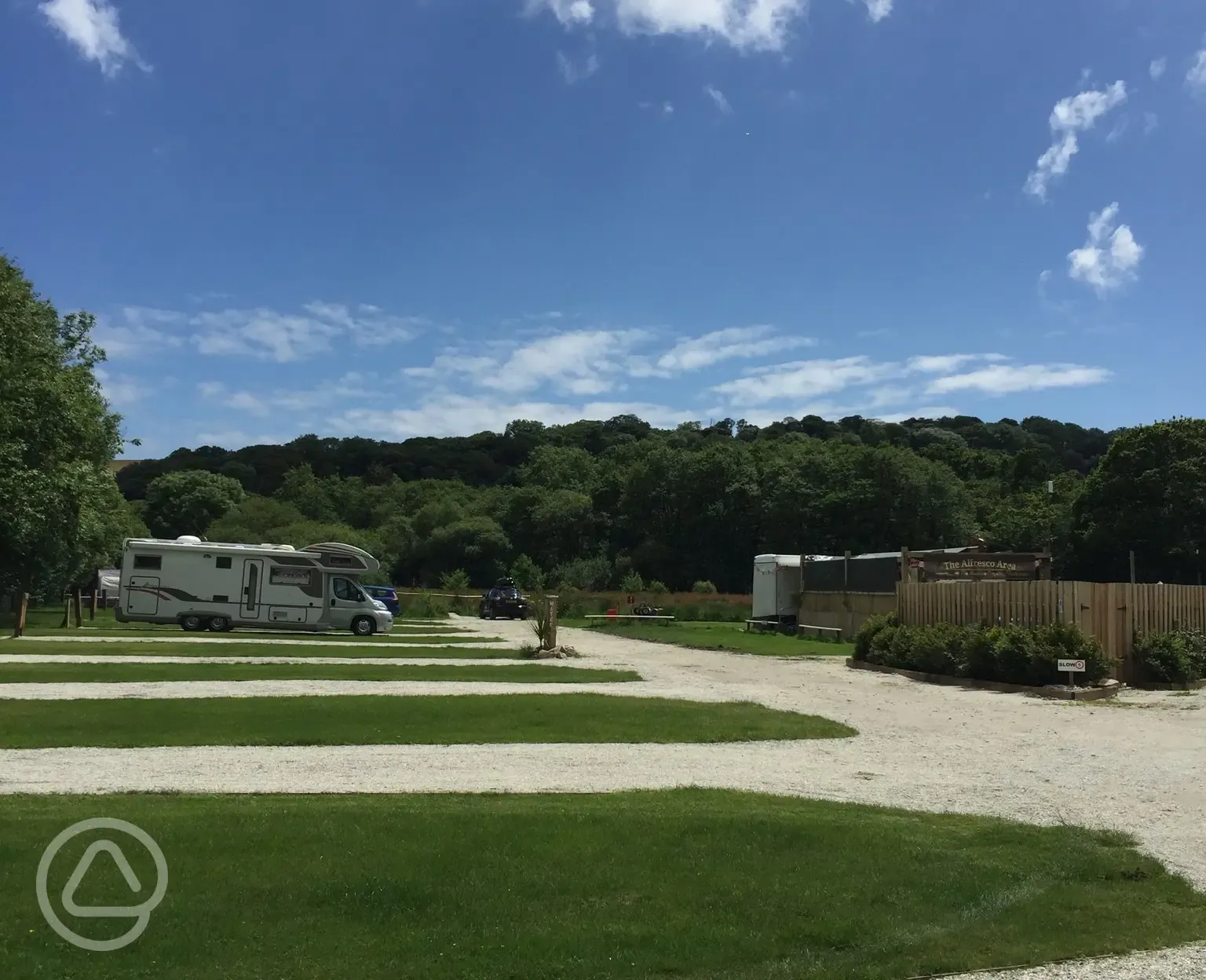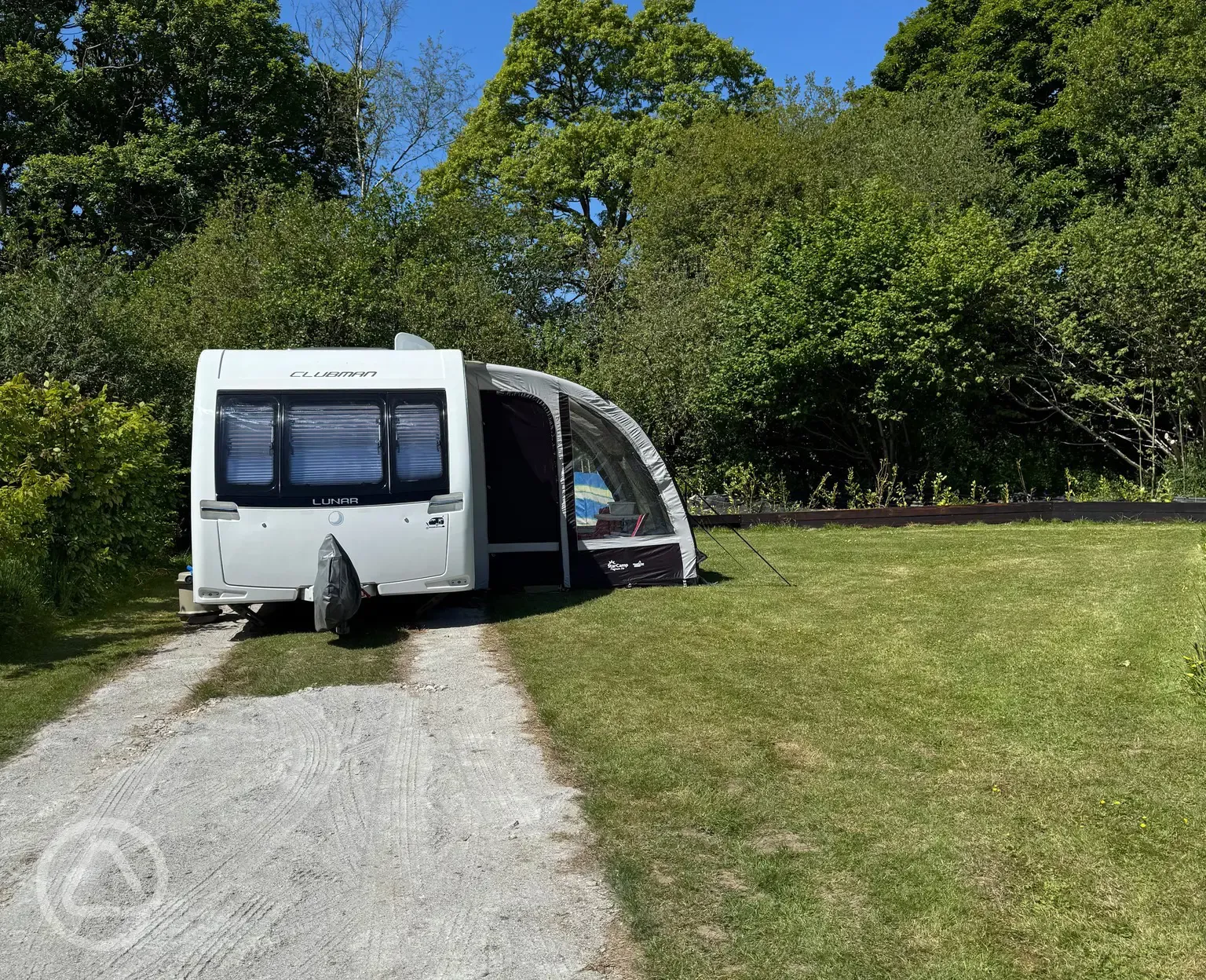Grass pitches with electric for tents, caravans and motorhomes.
