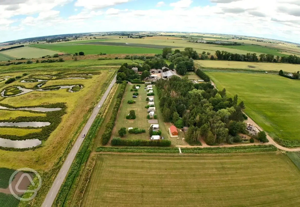 Set in the Lincolnshire countryside, this small adults only campsite offers peaceful camping and touring with onsite fishing and easy access to the River Glen, just five minutes away. It's a great base for walking and cycling, with several scenic spots nearby. There are 26 level pitches available, a mix of grass and hardstanding with an optional 15 amp electric hook up. The grass pitches are suitable for tents, caravans, motorhomes, and small campervans, whilst the hardstanding pitches are for caravans, motorhomes, and small campervans. Anglers staying at the site can enjoy the site's private 2.5m deep fishing pond, stocked with carp, perch, rudd, and bream. The site is well positioned for exploring Peterborough (25 minutes) and nearby market towns like Bourne and Spalding, both 15 minutes away. Well-behaved dogs are welcome. Please note, BBQs and campfires are not permitted.