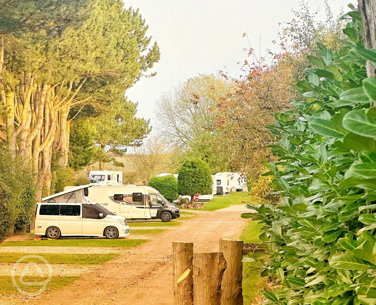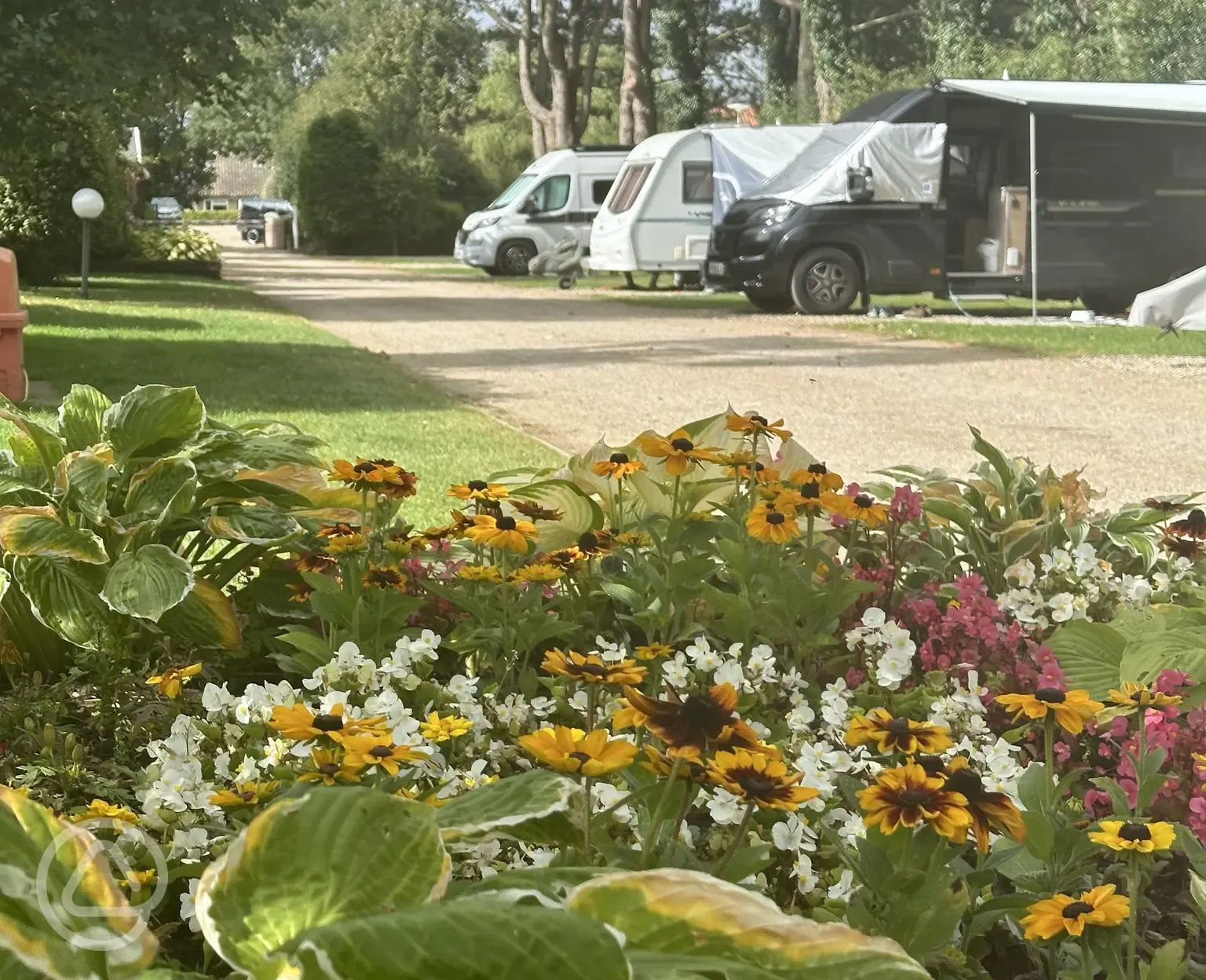 All weather hardstanding pitches with 16-Amp electric hook-up but without space for awnings.