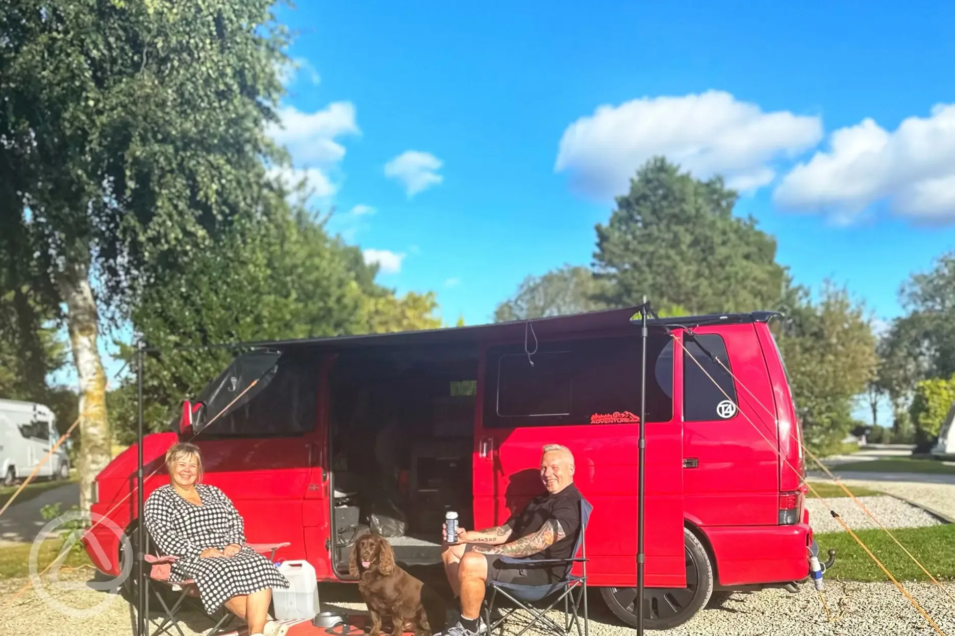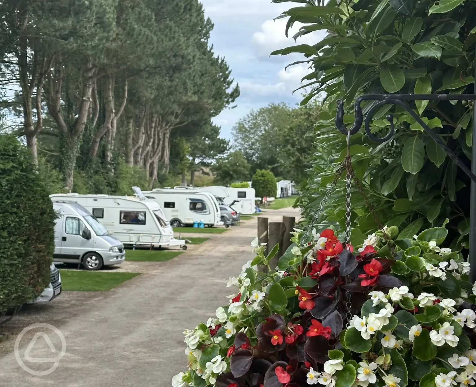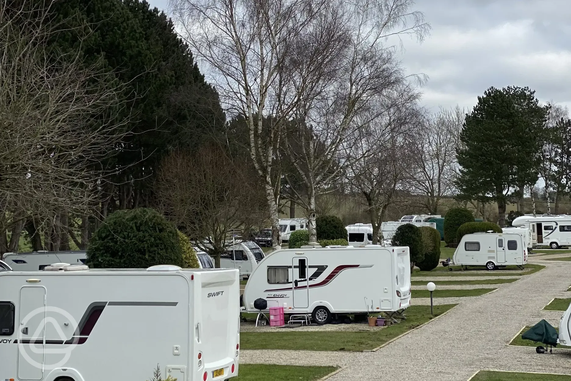 All weather hardstanding pitches with 16-Amp electric. A number of pitches have space alongside for car and awnings. Sorry, no gazebos or oversized awnings.