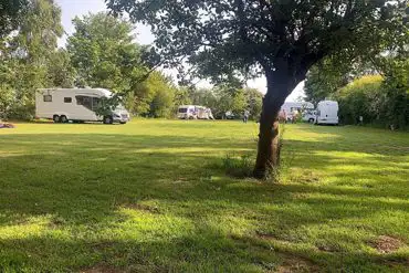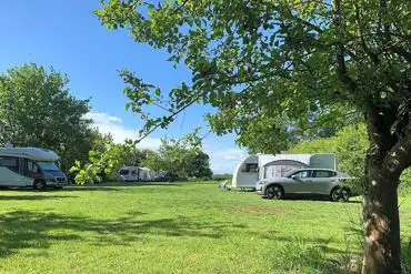 Grass pitches with optional electric hookup, suitable for tents, caravans, campervans and motorhomes.