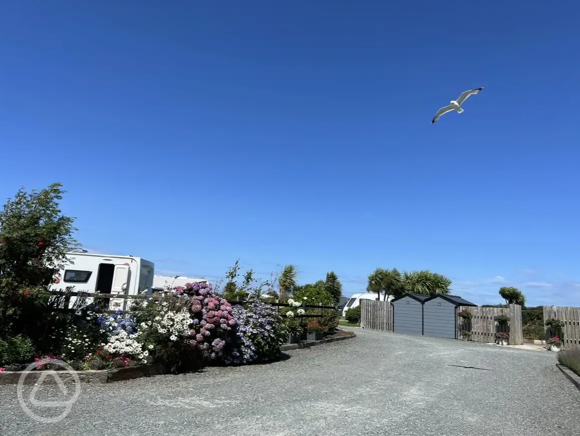 All pitches are of super pitch standard, being gravel with large grass separations planted including various shrubs and trees. They include a water waste disposal drain, fresh running water tap, and 10-Amp electricity outlet.