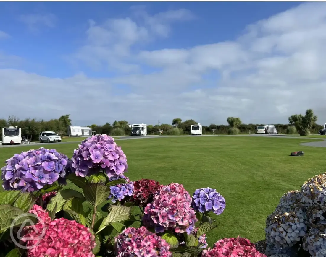 Large grass full service pitch - grey waste point, water tap, 10A hook-up, (approx. 12Mtr * 12Mtr)
