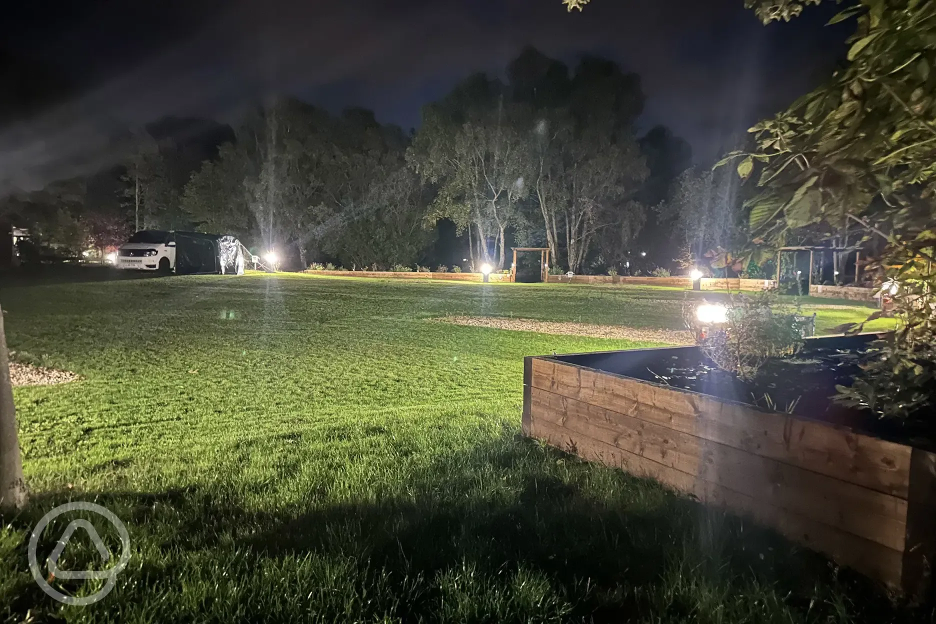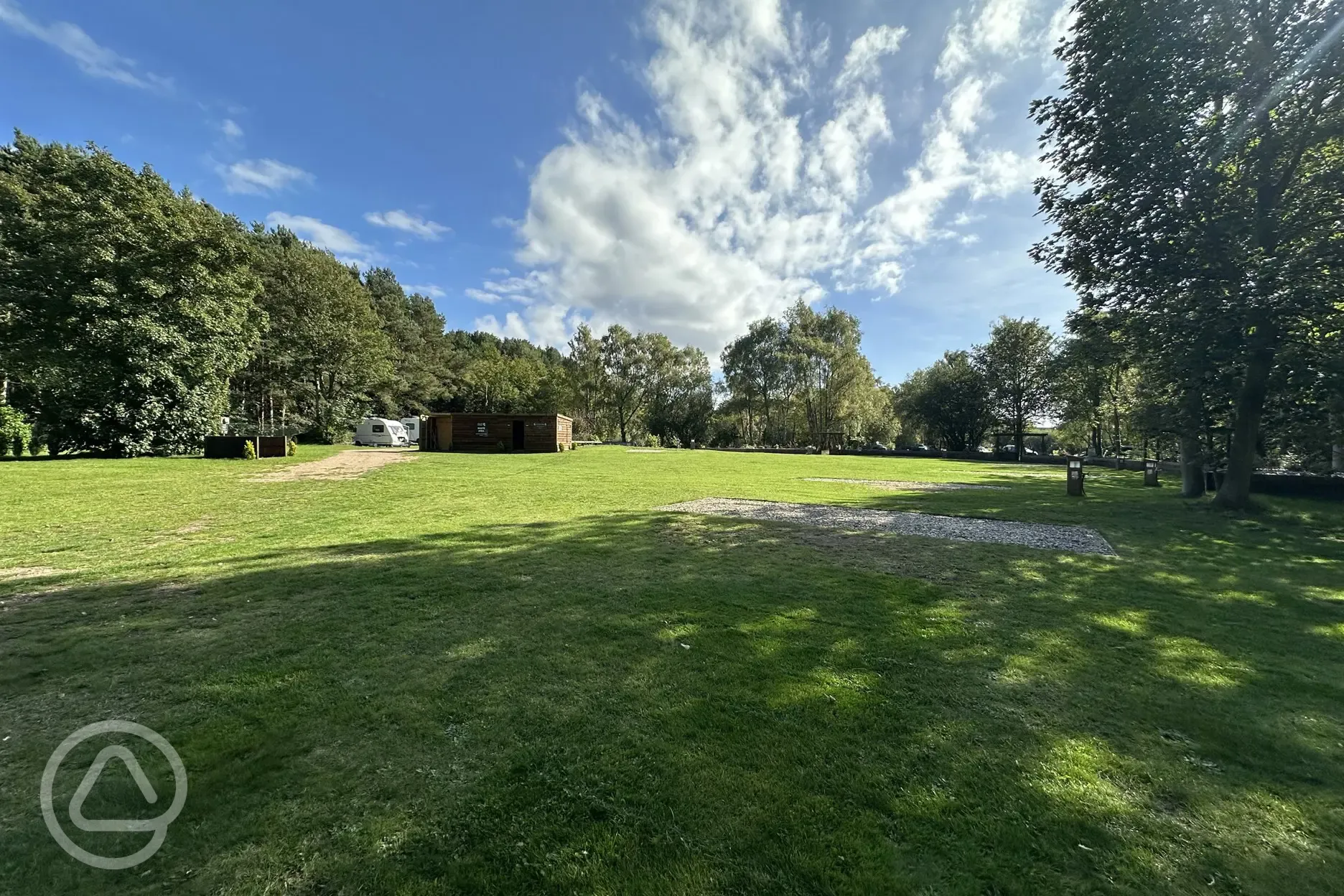 Hardstanding 3m x 9m pitches with 16 amp metered electric, water point and night light. Suitable for caravans, campervans and motorhomes up to 8m.