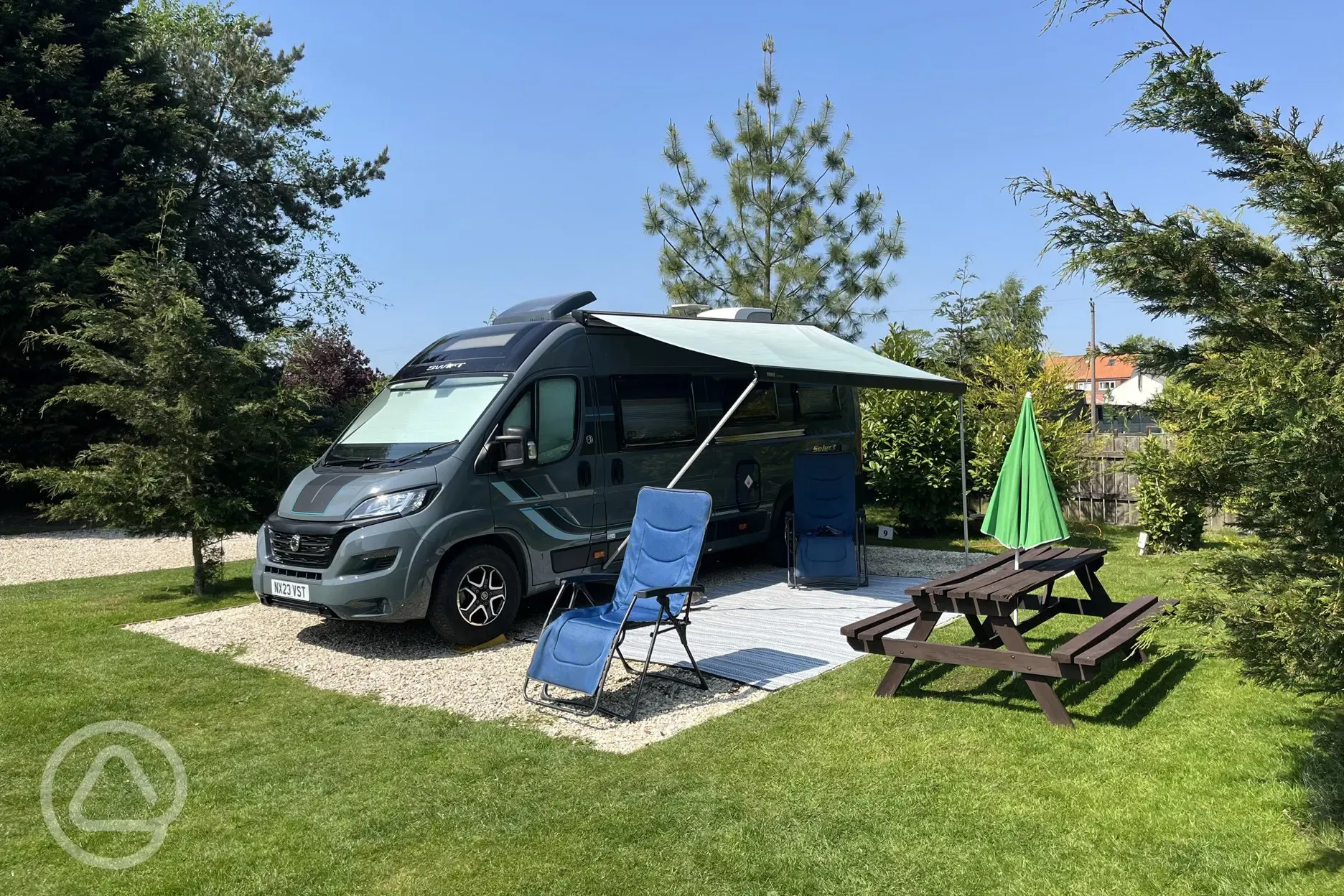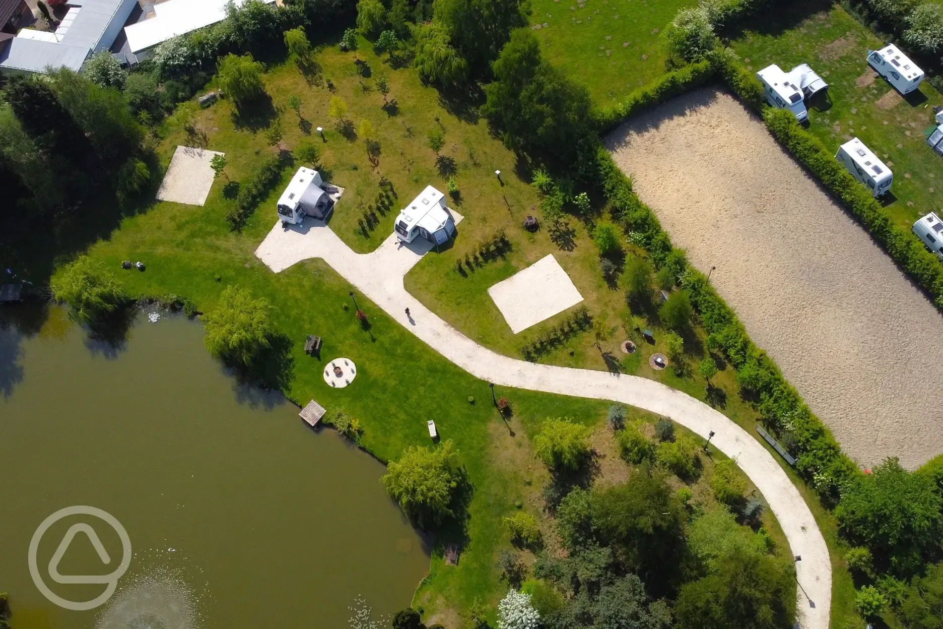 Gravel pitches with 16 amp electric suitable for motorhomes and caravans.