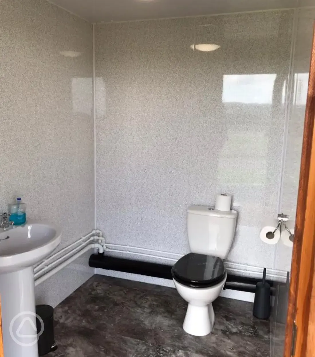 There is a pub just a short walk (under a mile) from the site. A well kept toilet and shower block provides a loo with a view.