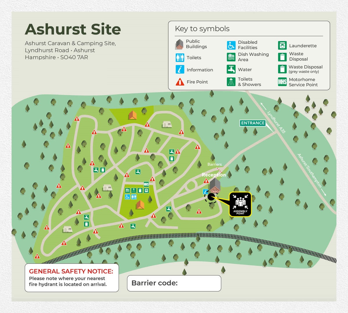 Tourers should have no issue with access at Ashurst Campsite as the site is just off a two-way road and has a wide entrance.