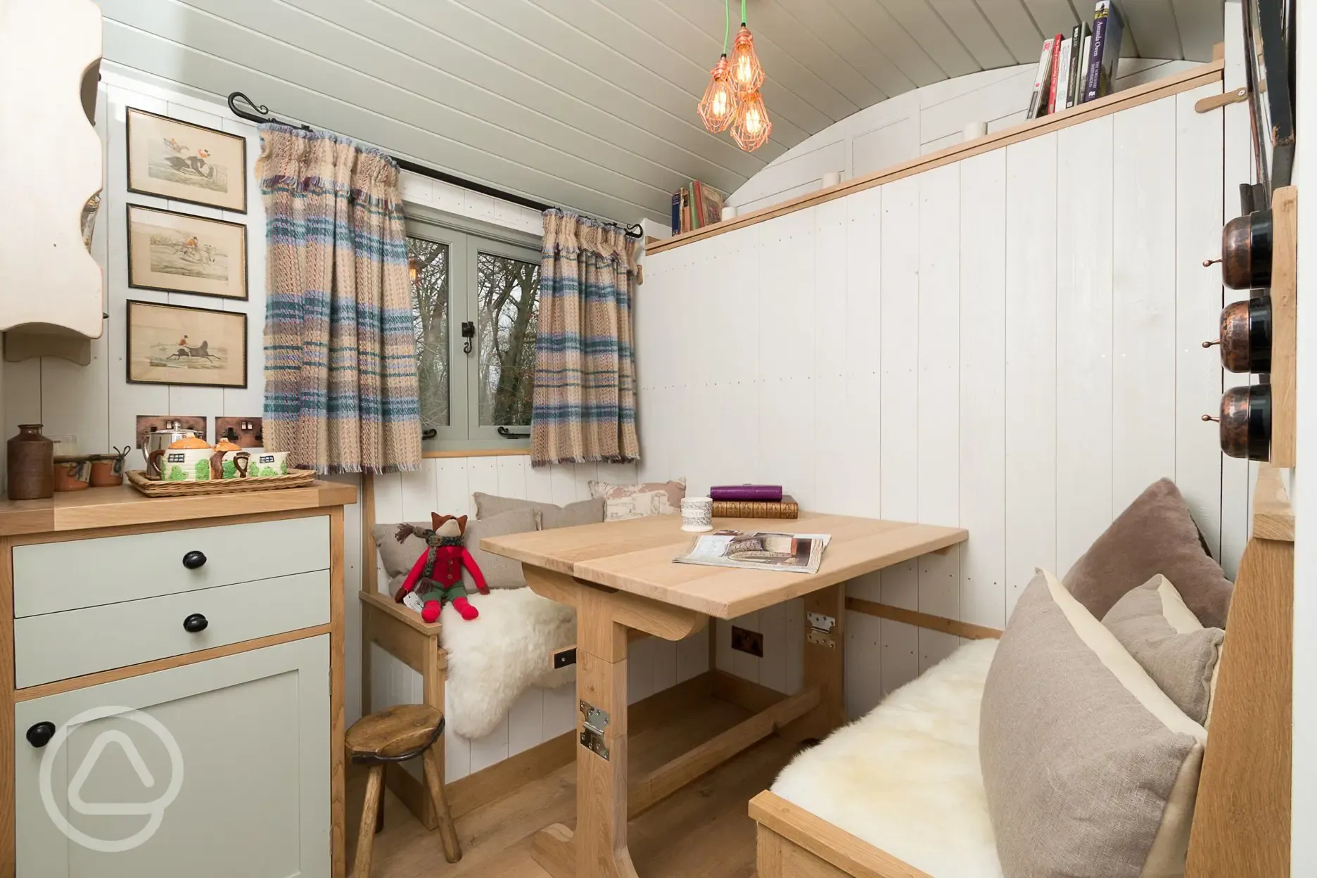 Local artisans designed the huts with owners Emma and Andrew helping every step of the way, right down to choosing the special copper light switches. One sprawling shopping spree later, and they were festooned with cosy yesteryear treasures and vintage pieces. Emma even designed the cushions herself! The wood burners are all set up, all you need to do is put a match to it then lounge on the daybed listening to the owls, or retreat to the comfy double bed with a pot of tea, a book and a plate stacked high with buttered toast. You'll have everything you need for everyday life, sprinkled with little luxuries like a game of chess or a sip of fine wine from vintage glasses. There's a fire pit just outside each hut so you can barbecue over a wood fire, or try the garden oven to roast your chicken. A wood fired hot tub is also right outside each shepherd's hut for you to soak in too. Inside, there's a gas hob for any rainier days when you want to tuck into a hot supper whilst keeping dry. You can buy fresh produce from the farm itself, like lamb burgers and juicy sausages, as well as gourmet picnic hampers. The site has received the Visit England gold award.