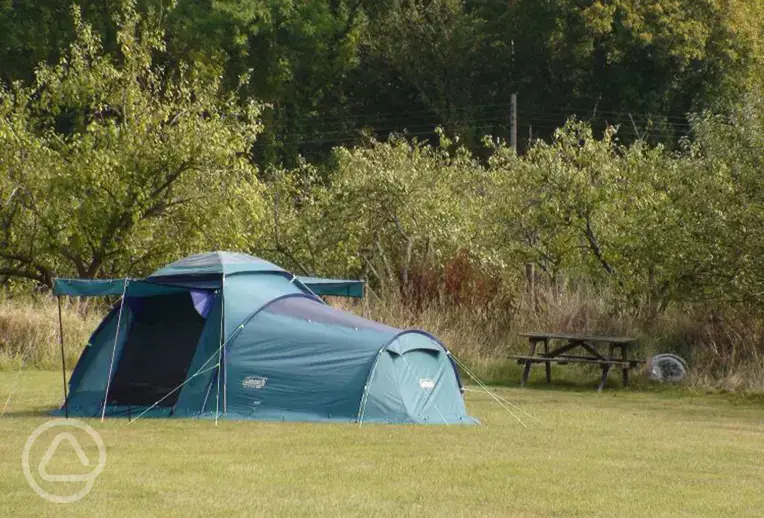 Dog friendly site, pitch up amongst the fruit orchard and enjoy the starry skies. Ten minute walk to a pub!