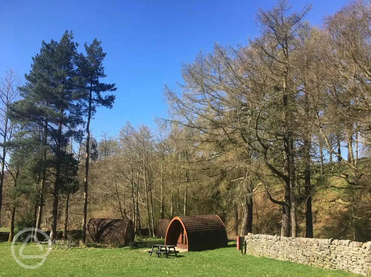 Camping pods with heating, electricity and lighting available, sleeping up to five