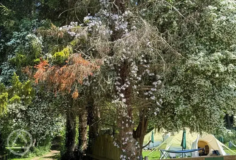 Within Cheddar Gorge, Owley Woods is a peaceful, award-winning, adult-only site on The Mendip Hills with spectacular views over Cheddar, Somerset. Just five spacious, fully furnished Lotus Belle tents share the exclusive site with hot showers, king-size beds with cosy bedding and firepits. Onsite, pick up hampers, BBQ packs, and more. It's a perfect spot for walking and cycling, with just a short 15 minute walk to Cheddar. Dogs are welcome.