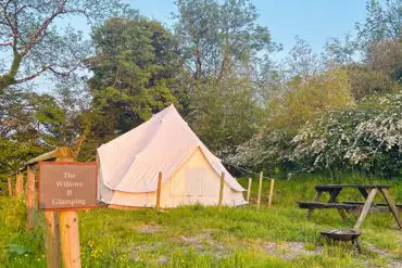 The site is open all year round, with hard pitches allocated in wetter months and glamping offered March to September.