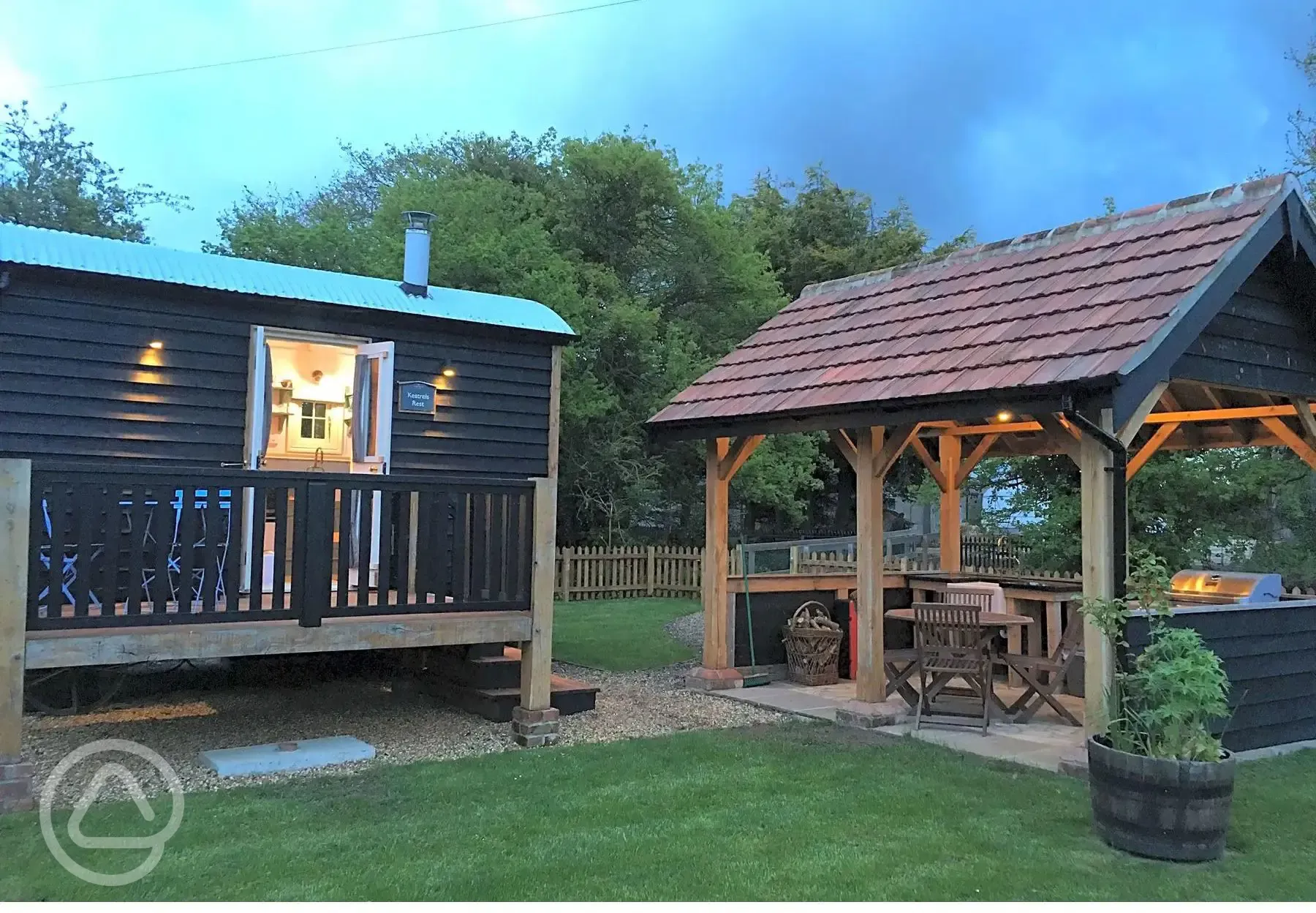 Adult-only luxury shepherd's huts on the edge of the Waveney Valley, half way between Harleston and Bungay.