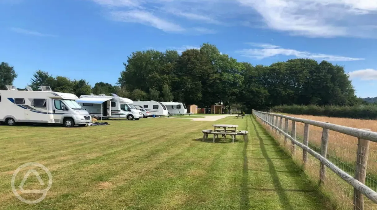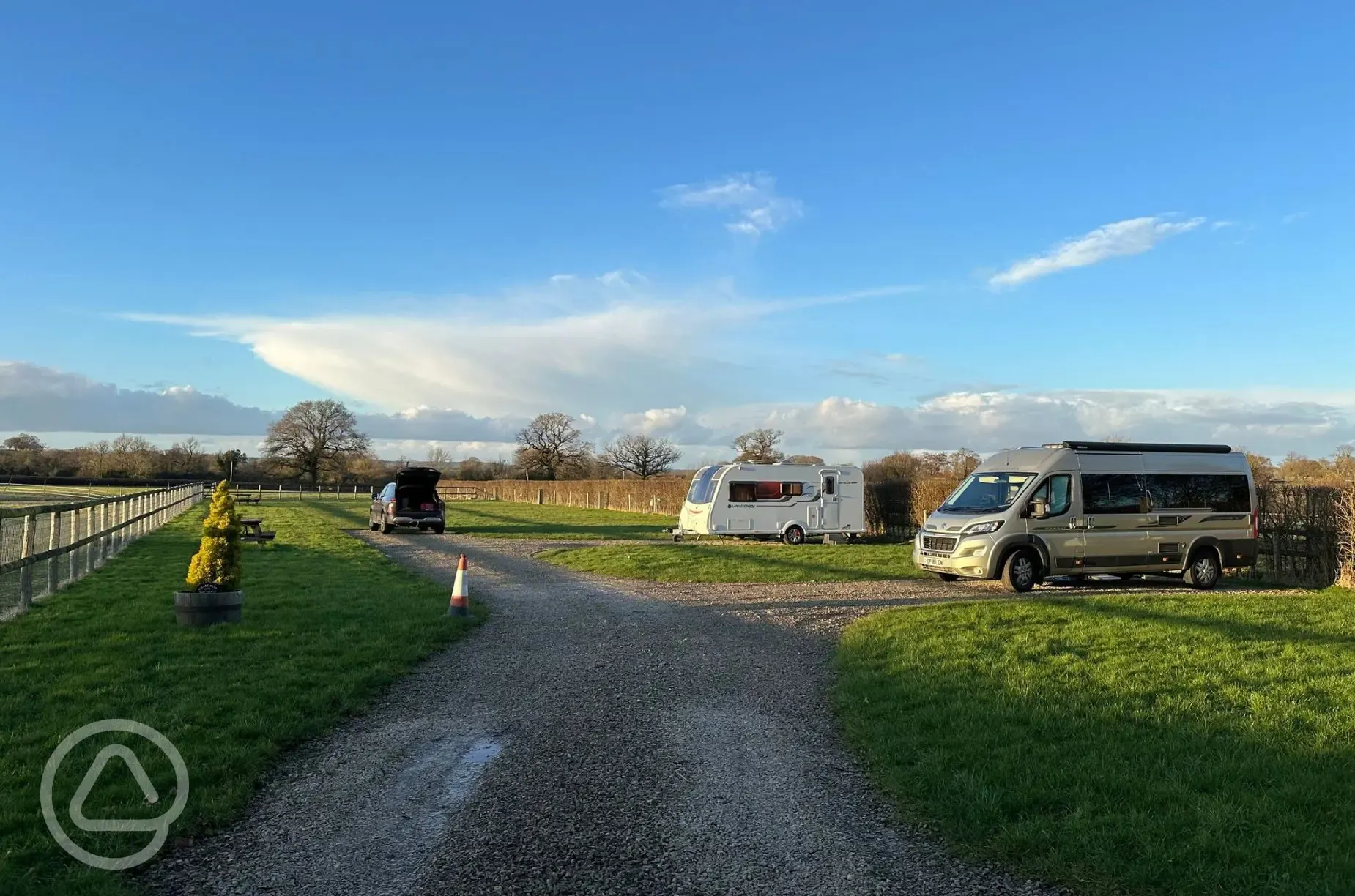 Hardstanding pitches to suit tourers. Ten square metres. Includes electric, individual tap and free highspeed WiFi.