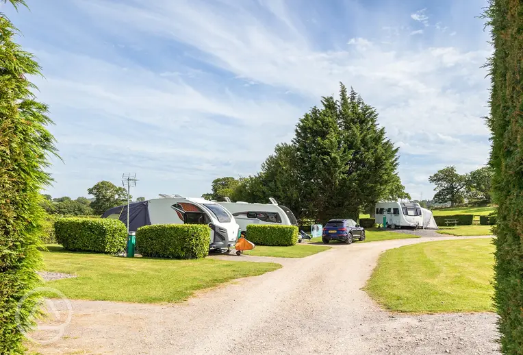 Spacious hardstanding pitches for caravans and motorhomes with 10-Amp electric hook-ups.