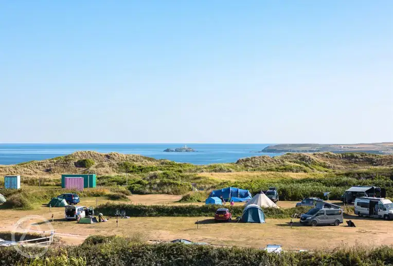 Farm campsite with sea views of Mounts Bay. Within ten minutes of Penzance, St Michael's Mount and Long Rock Beach.
