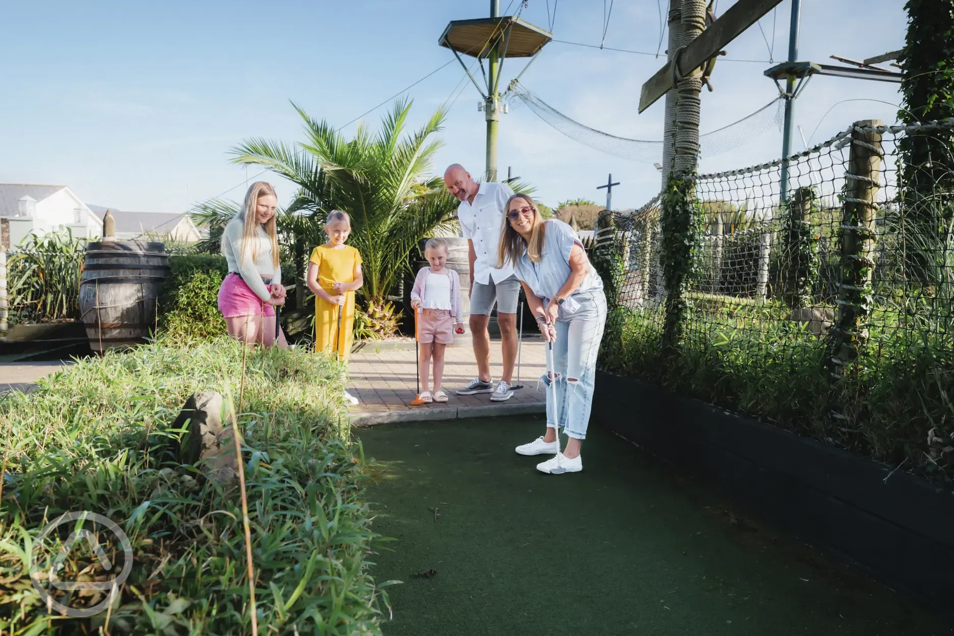 The park is only ten minutes from Woolacombe beach, often recognised as one of the best beaches in England, so it's the perfect base if you're looking to enjoy a fun-filled day by the seaside. There are also plenty of activities onsite, including high ropes, a climbing wall, a surfing simulator, pottery painting, heated indoor and outdoor pools and much more. After a day exploring the local area or having fun around the park, grab a bite to eat at the onsite pub before settling in to enjoy some top-class evening entertainment. There are 89 spacious pitches available for touring and motorhomes, all offering 16 amp electric hook-up on all-weather bases. There are also Super Pitches with water, drainage, TV aerials and lighting available. Grass tent pitches without electric hook up are also available. For families looking for accommodation, the site also offers a wide range of holiday homes including apartments, houses, villas and caravans, suitable for all tastes and budgets. Accessible and pet-friendly options are also available. If you fancy a break with a touch of luxury, some villas even offer hot tubs for the ultimate relaxing getaway! This is a pet-friendly park, so you can bring your four-legged friends along to enjoy a fabulous holiday too!
