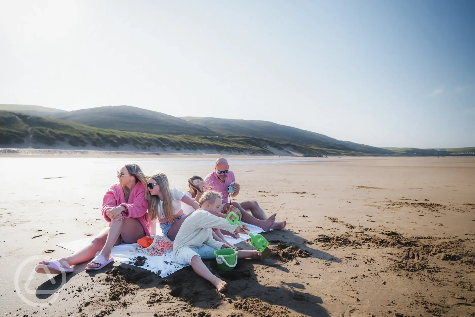 Family friendly pitches and safari tents 100m from Croyde Bay, onsite restaurants, surf and wetsuit hire, and shop!