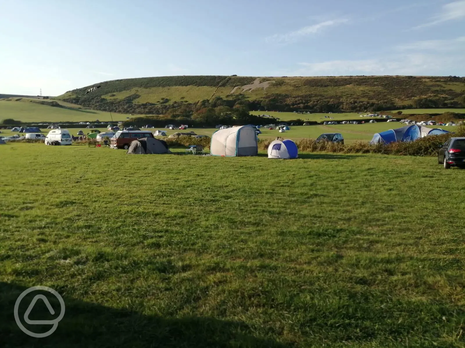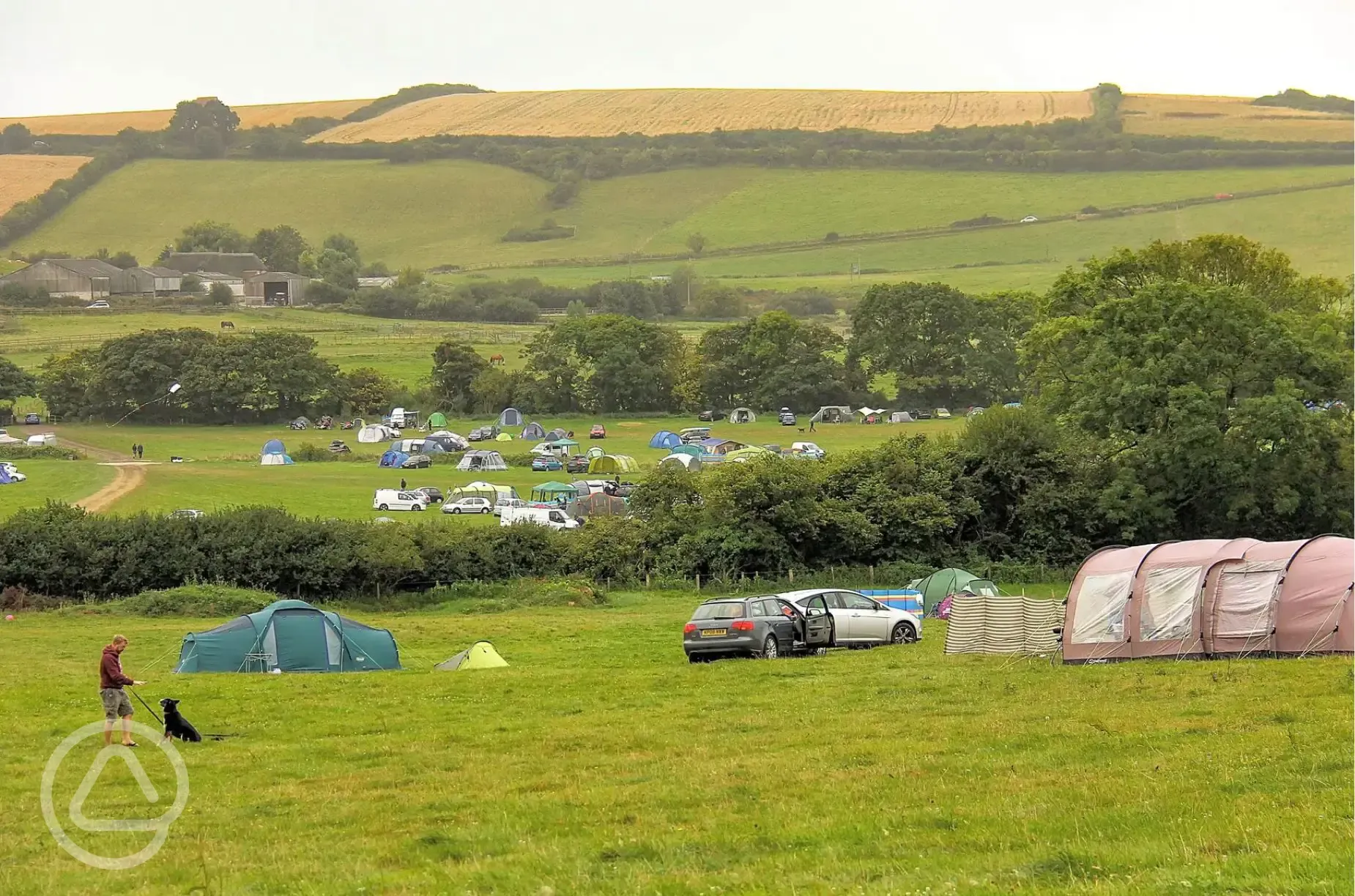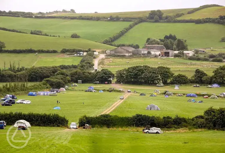 A family campsite in flat fields that are beautifully close to the sea. Camp right underneath the star attraction, the famous Osmington White Horse, which is carved into the hillside. Spread out in spacious grass pitches, let the little ones run free and cook up a hearty BBQ with the farm's produce. A 10 minute drive from the beach and surrounded by an Area of Outstanding Natural Beauty.