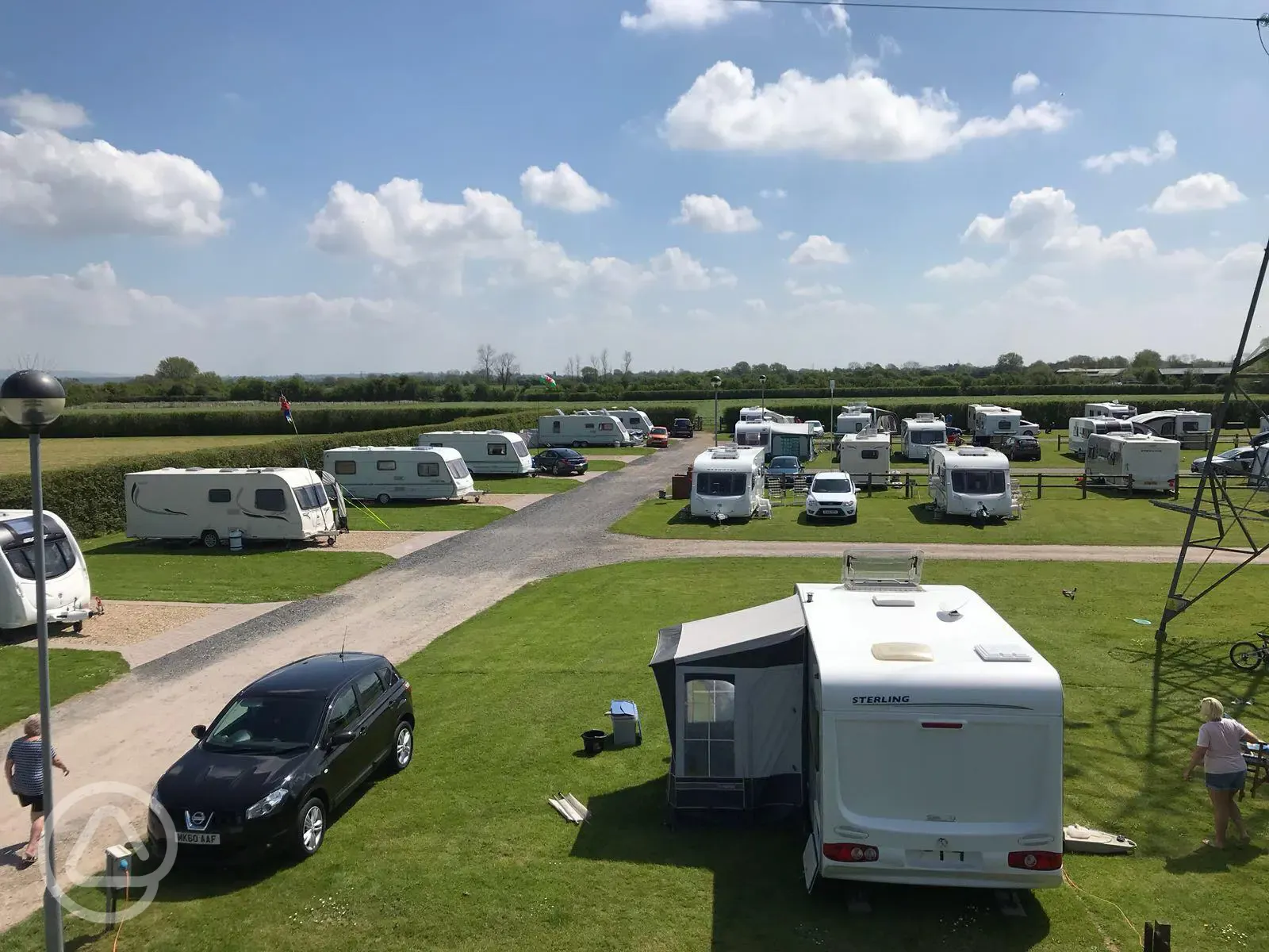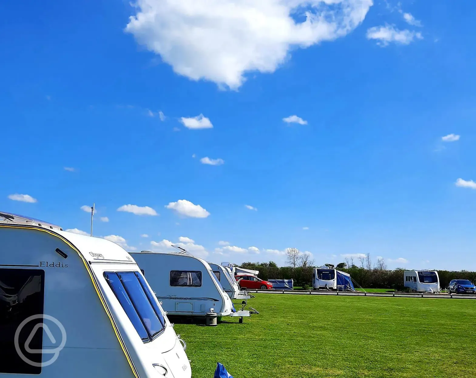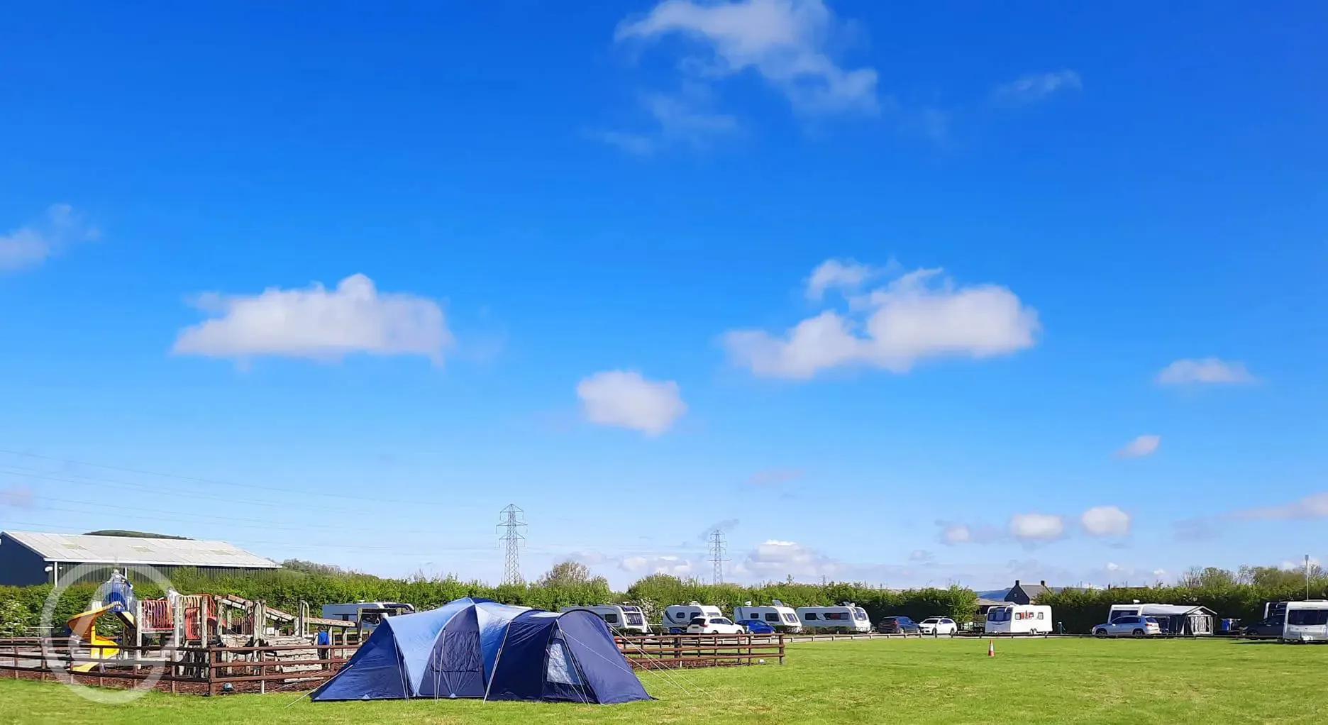 Grass pitches catering for tents or tourers. Electric grass pitches located in separate field onsite.