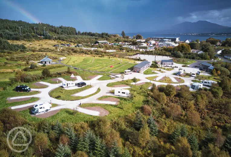 Hardstanding pitches with a 16 amp electric hook up for campervans, caravans, and motorhomes.