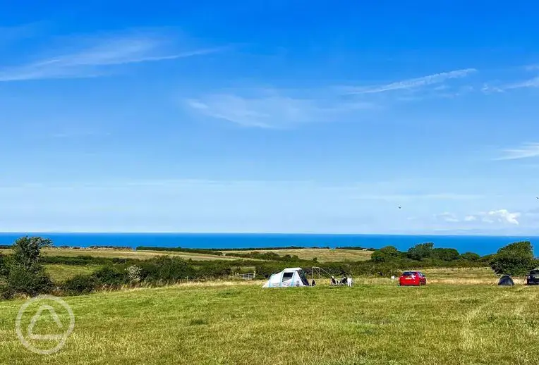 Family friendly camping, touring and glamping by Cardigan Bay with alpacas, lovely sea views and beaches nearby.