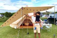 Nestled within Cornish countryside and set just a ten minute stroll from Porthcothan Bay, Macdonald's Farm takes in superb valley views with spacious grass pitches for tents and tourers, and luxury glamping in stylish bell tents. It's home to a range of animals, including alpacas and horses, as well as pony trekking, children's playground, a pop up pizza van and more. Dogs welcome.