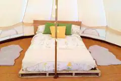 Luxury bell tents with comfy beds. Hassle free, these are erected for you and offer fab ocean views. Bedding and a soft duvet is provided, along with fairy lights to complete the atmosphere. Access to shared WC/shower facilities nearby.