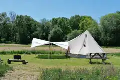 Eco family-friendly camping and glamping on a meadow with plenty of space