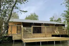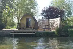 Camping pod with lake views and measuring 2.3m x 2.7m. These pods sleep up to four and contain electricity, heating, lighting an outside decking and a picnic table. Please bring bedding and mattresses. These pods include exclusive swim for fishing.