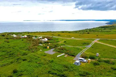 Relax at this coastal, members only site and enjoy sea view pitches, direct access to the Wales Coast Path, and local sandy beaches that are within a ten minute drive. Sandersfoot and Tenby are within a 30 minute drive, too! Onsite, you will have access to a handy farm shop, a playground, and a dog exercise area. Choose from non electric meadow pitches, enclosed non electric meadow pitches, or enclosed electric meadow pitches for campers and tourers. Each pitch has its own compost toilet. There are two enclosed 10m x 10m hardstanding pitches with a 16 amp electric hook up and water hook up for roof and trailer tents, campervans, and motorhomes. Tourers will also have access to six enclosed electric hardstandings with a water hook up, private showers, compost toilets, and washing up areas. There is also a cooking shelter, picnic table, and fire pit. Please note that two allow caravans, the other four do not. Glampers can opt for cosy furnished bell tents that feature a double bed, a day bed, a camp bed, and a compost shower, or there are five ensuite geodomes that sleep can sleep up to five with a double bed, two single beds, an optional camp bed, a sofa (bedding and linen are provided, though towels aren't), and a cooking shelter. Both have access to heating, electricity, a kitchenette, and outdoor seating. This site is for The Greener Camping Club members only. At least one member of the booking party has to be a member Up to four dogs are welcome here! Campfires and BBQs are permitted. Guests can purchase kindling, firelighters, and logs from the shop onsite.
