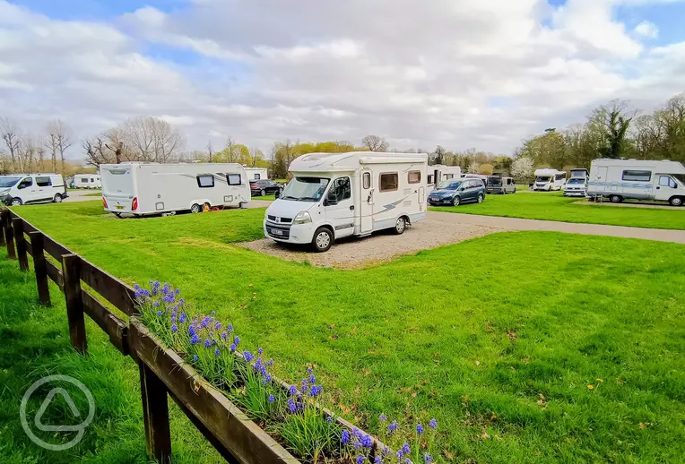 Hardstanding 9m x 3m pitches with an optional 16 amp electric for roof tents, campervans, caravans and motorhomes.