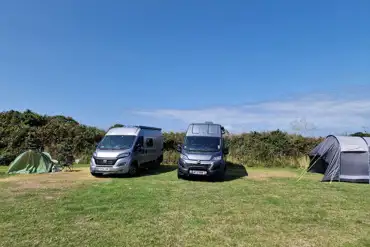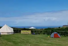 Farm campsite with sea views of Mounts Bay. Within ten minutes of Penzance, St Michael's Mount and Long Rock Beach.