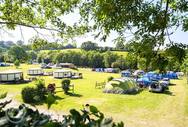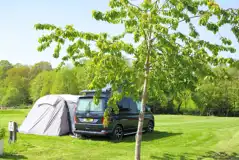 Grass pitches (9m x 7m) with an optional metered 16 amp hook up for tents, trailer tents, and campervans.