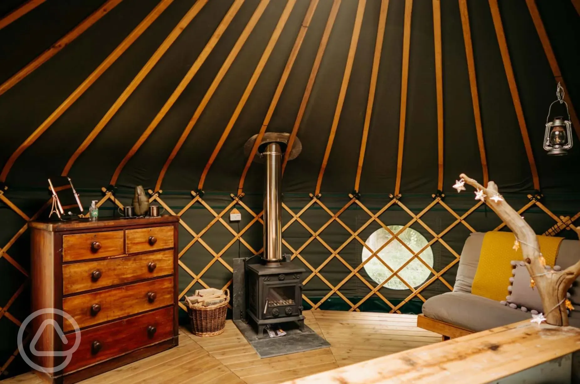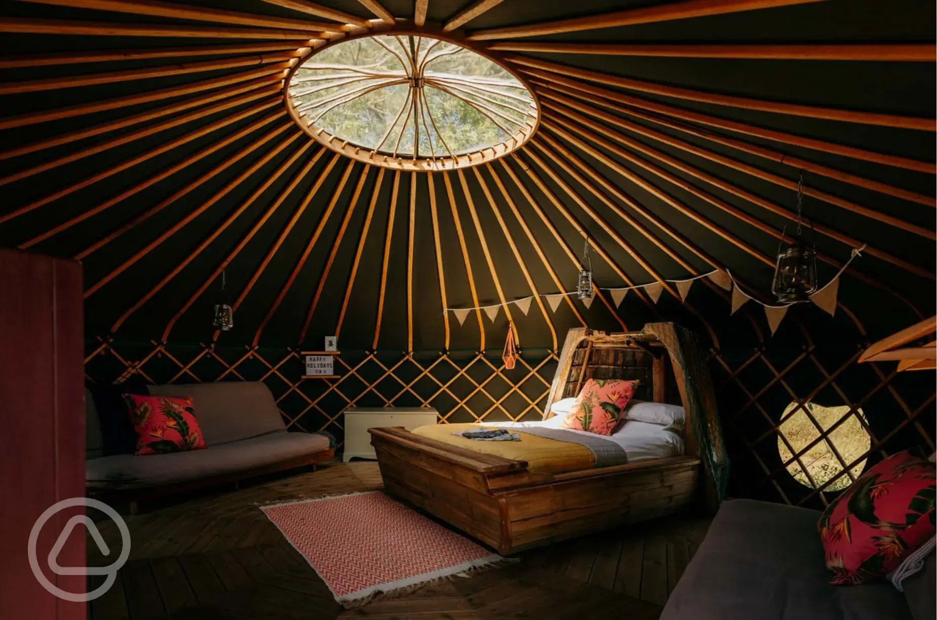 Five beautifully handcrafted yurts with a wood burner, solar lights, a spacious double bed, two futons and other cosy furnishings inside each.