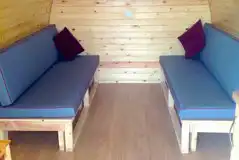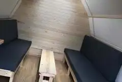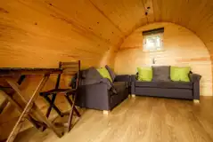 Smaller glamping pod, designed to sleep a family of four. This is the only pod that allows pets - two small dogs or one medium sized one.