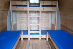A simple camping pod with two single beds and a bunk bed, heating, plug sockets, a private decking and outdoor seating. Gazebos and pup tents are allowed. Bedding is not included in your stay, please bring your own or ask about hire. A pet free pod.