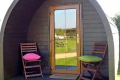 Camping pod with a double bed, sofa bed and bunk beds. There is a fridge, underfloor heating, TV, kettle, crockery, glasses and cutlery. Outside there is a private garden, picnic bench, gazebo, gas BBQ and cooker. Please bring your own bedding.
