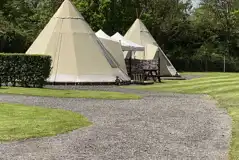 Tipis with a double bed, zed beds, heating, rugs and throws. There is a private garden area with a picnic bench, gas BBQ and cooker, ice box, gazebo, cups, plates and cutlery. Please bring your own bedding.
