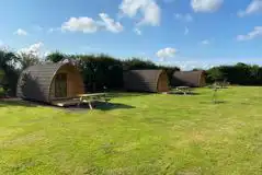 This is a peaceful and family friendly campsite with plenty of space, set within five acres on a working arable farm. The village includes its own impressive castle, with grounds that will suit picnickers. Pitches are large and set on grass with optional electric, plus there is space for ball games between them. Pets are welcome. Camping pods are also available onsite, sleeping two, with mattresses, a small fridge, kettle, toaster, chairs, charging point and heater. A picnic table is also available outside. Please note that guests will be required to bring along bedding. Sorry, the site accepts tents only and cannot accommodate caravans or campervans.