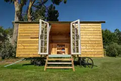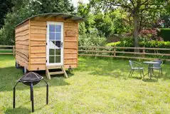 Bespoke and rustic shepherd's huts equipped with double bed and single bed, sleeping up to three adults or two adults and two small children.