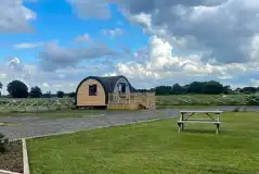 Furnished with a double bed and double sofa bed with bedding, a kitchen including a fridge, microwave, kettle and toaster and ensuite shower and toilet. Dogs are not permitted in the pod. Outside is a decked area with a picnic table.