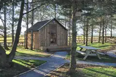Camping pods that sleep up to 3 adults or 2 adults and 2 children. Bedding not provided. Each pod has an electric heater, charging point, kitchenette with a kettle, microwave and fridge. Outside you'll find an outdoor picnic table and bench.