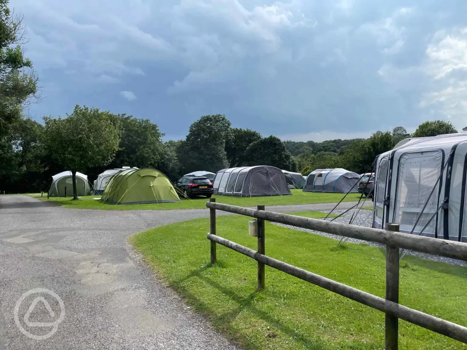 Grass pitches without electric in the meadow, suitable for tents only. The maximum unit size is 9m x 8m.