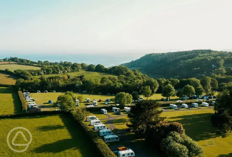 This peaceful countryside site is located within the East Devon Area of Outstanding Natural Beauty and is the perfect family retreat to soak up the sea breeze. Stroll down one of the coastal paths and relax on the beach or swim in the tranquil water. The spacious green spaces on the site provide a variety of pitches. Tents are welcome on the non electric grass pitches located in the meadow and each measure 9m x 8m. There are electric grass pitches with water hook ups suitable for tents caravans, campervans and trailer tents located in the meadow, each measuring 9m x 9m. Located in the park and the meadow there are also a number of electric hardstanding pitches suitable for caravans, campervans and trailer tents with water hook ups, also measuring 9m x 9m. All pitch types allow up to four guests. There are also a number of static caravans at this site. Sorry, firepits and campfires are not allowed. Four legged friends are also welcome to join you for your stay with up to two dogs allowed per pitch.