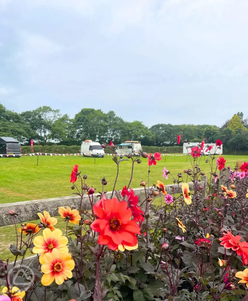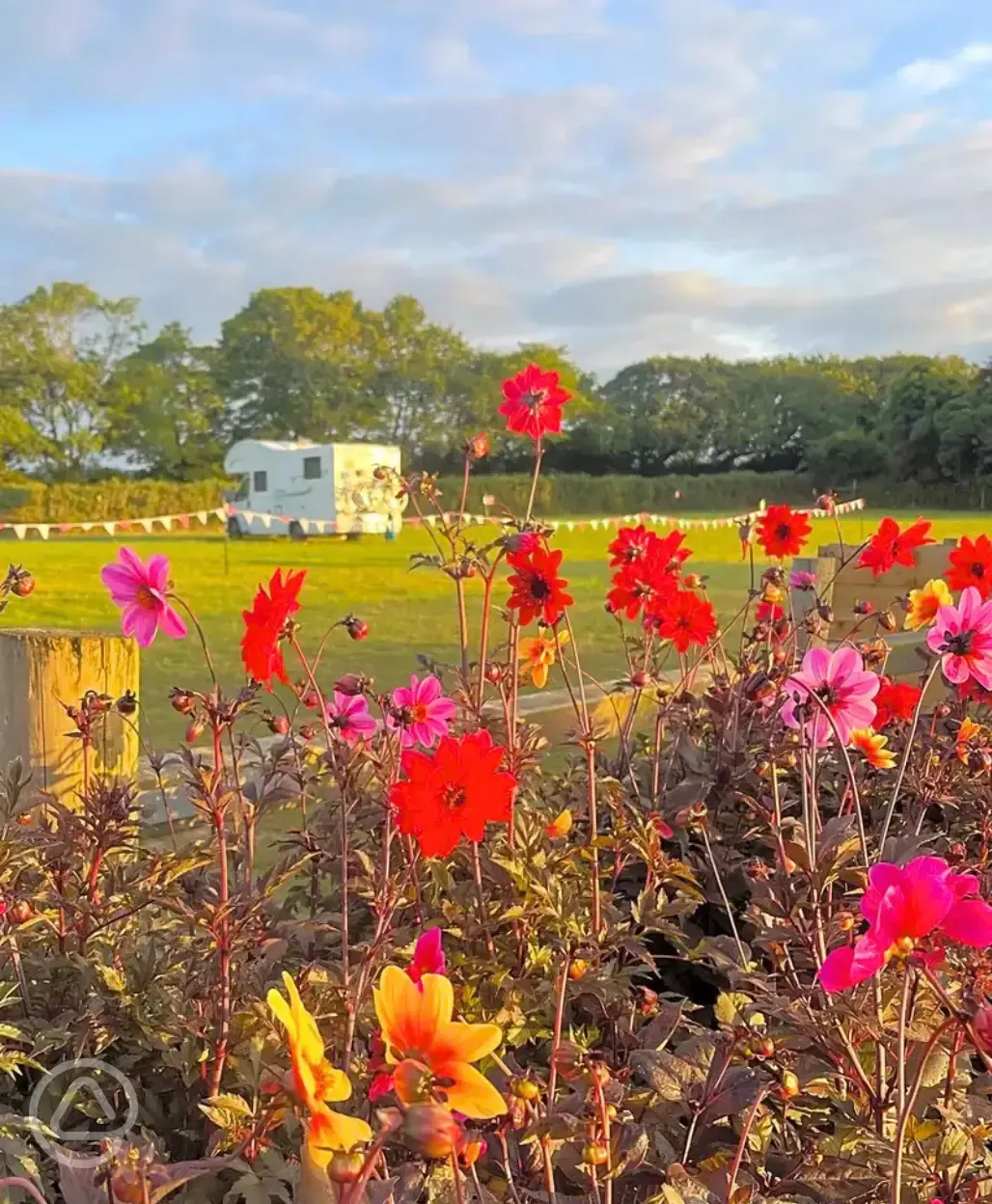 Peaceful camping and touring site close to The Lost Gardens Heligan, five minutes from Mevagissey. Dog friendly.