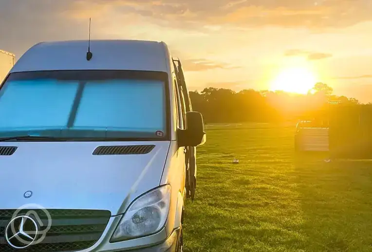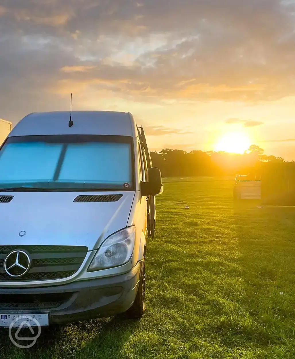 Non electric grass pitches (5m x 10m) suitable for one campervan or motorhome allowed per pitch. Awnings and twin-axle vehicles are accepted.