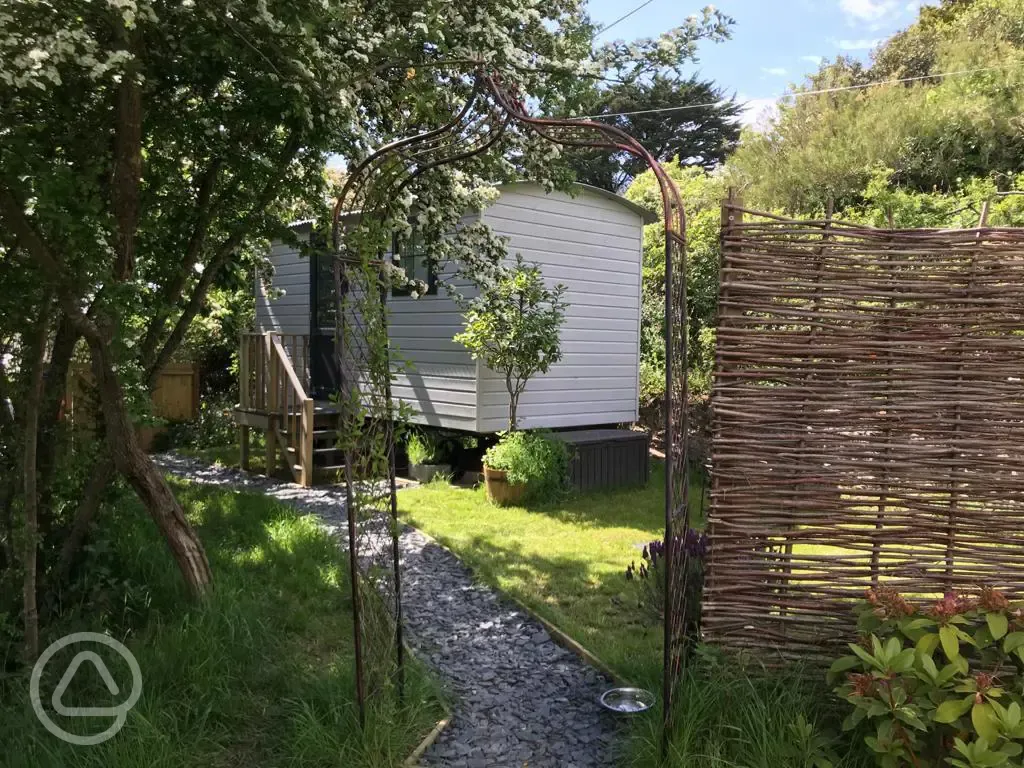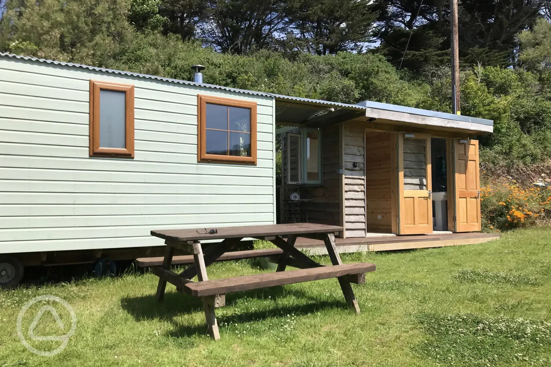 Cosy yurts and shepherd's hut with log burners set in a peaceful location. A 15 minute walk from Polperro!