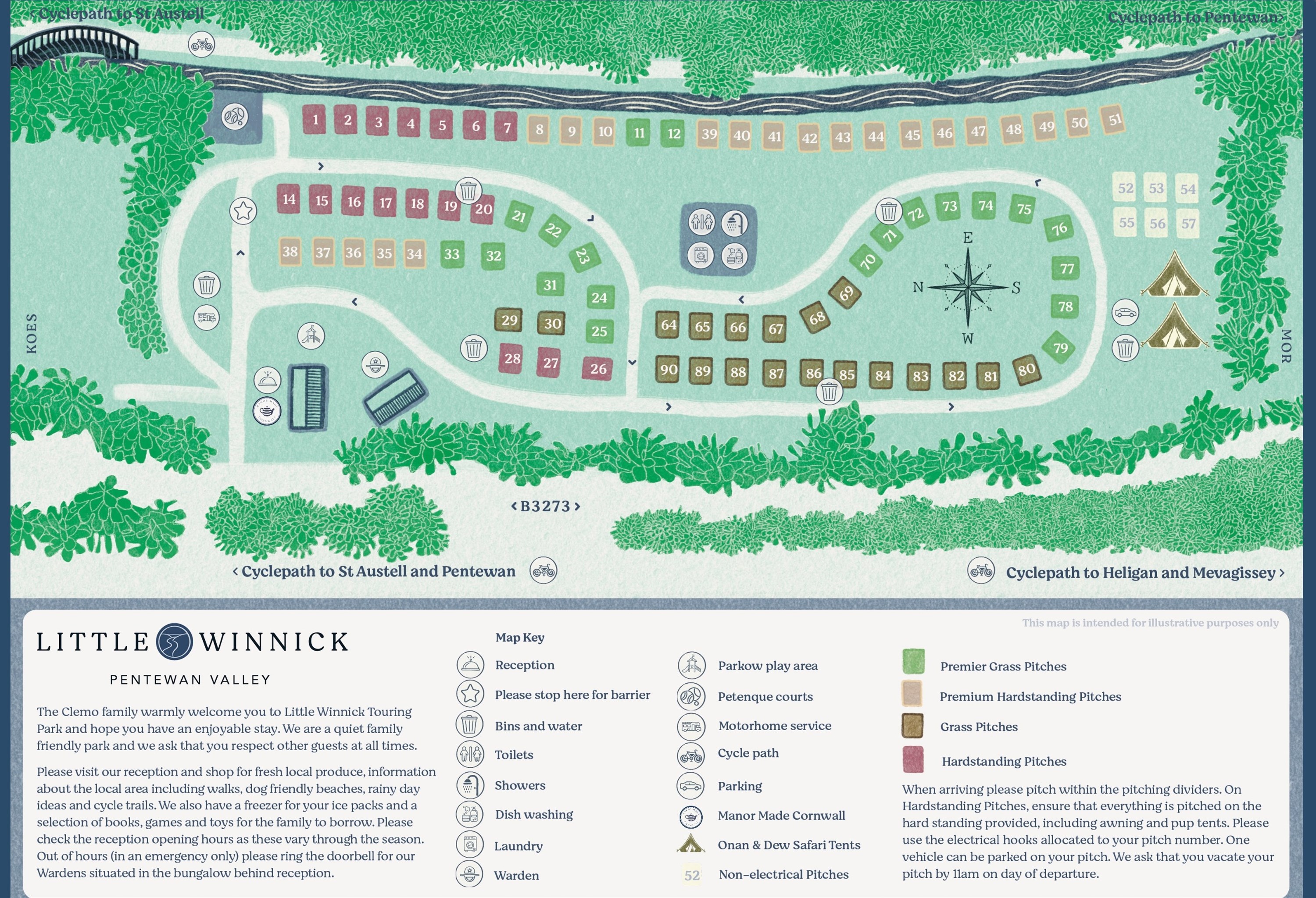 The site welcomes you to arrive any time between 1pm and 6pm for camping and touring and between 4pm and 6pm for glamping. Though please advise the site if you are delayed, as if they have not heard from you within 24 hours of expected arrival, they reserve the right to re-let your stay. Departure is due before 11am on your last day for camping and touring, and by 10am for glamping.